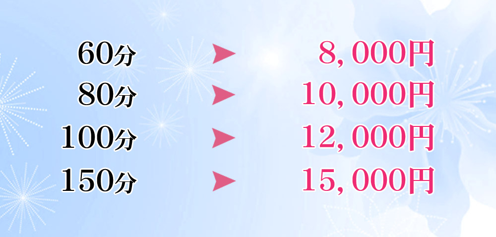※ご指名されての当日キャンセルの場合 100%のキャンセル料が発生致します。 フリーの当日キャンセルの場合 50%のキャンセル料が発生致します。
